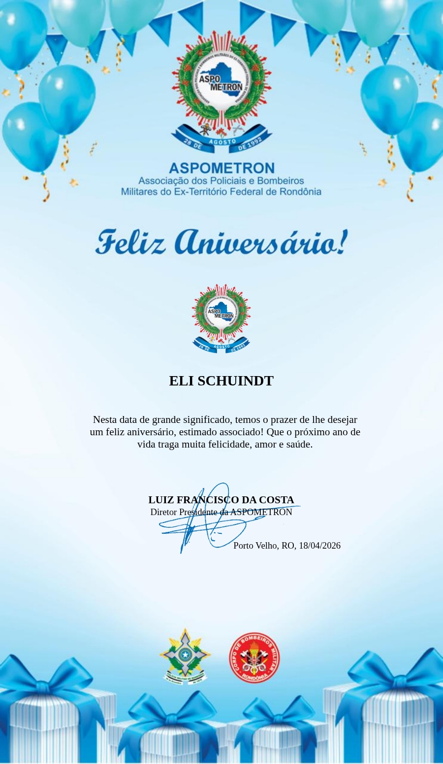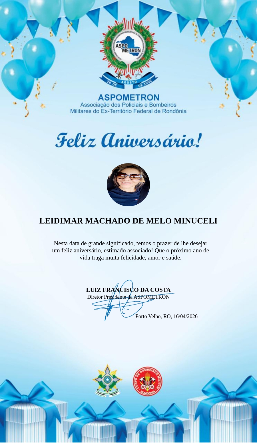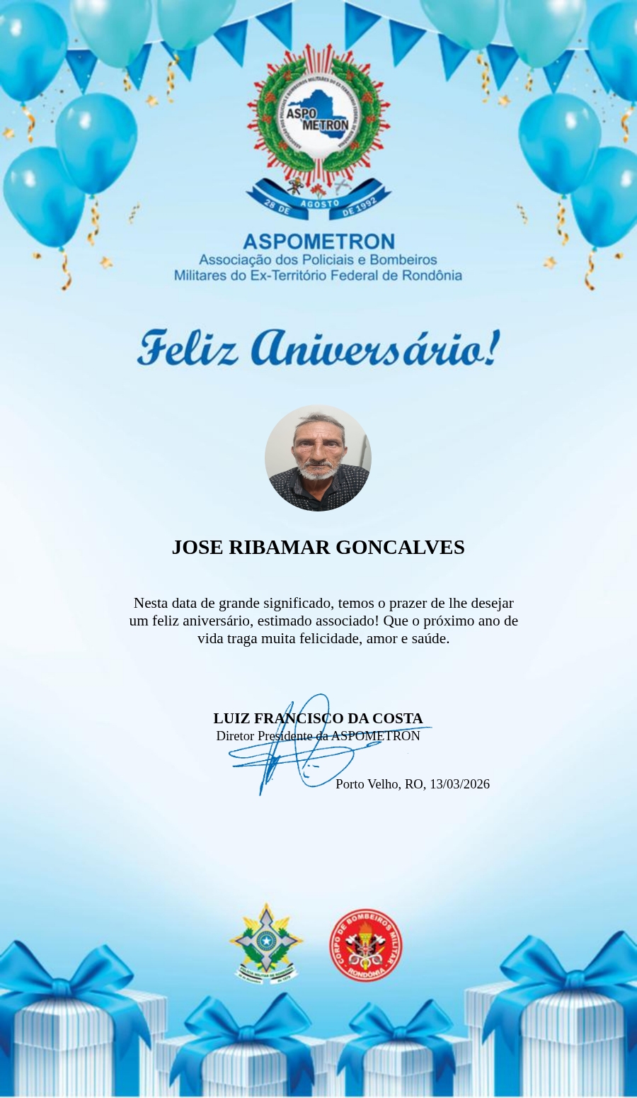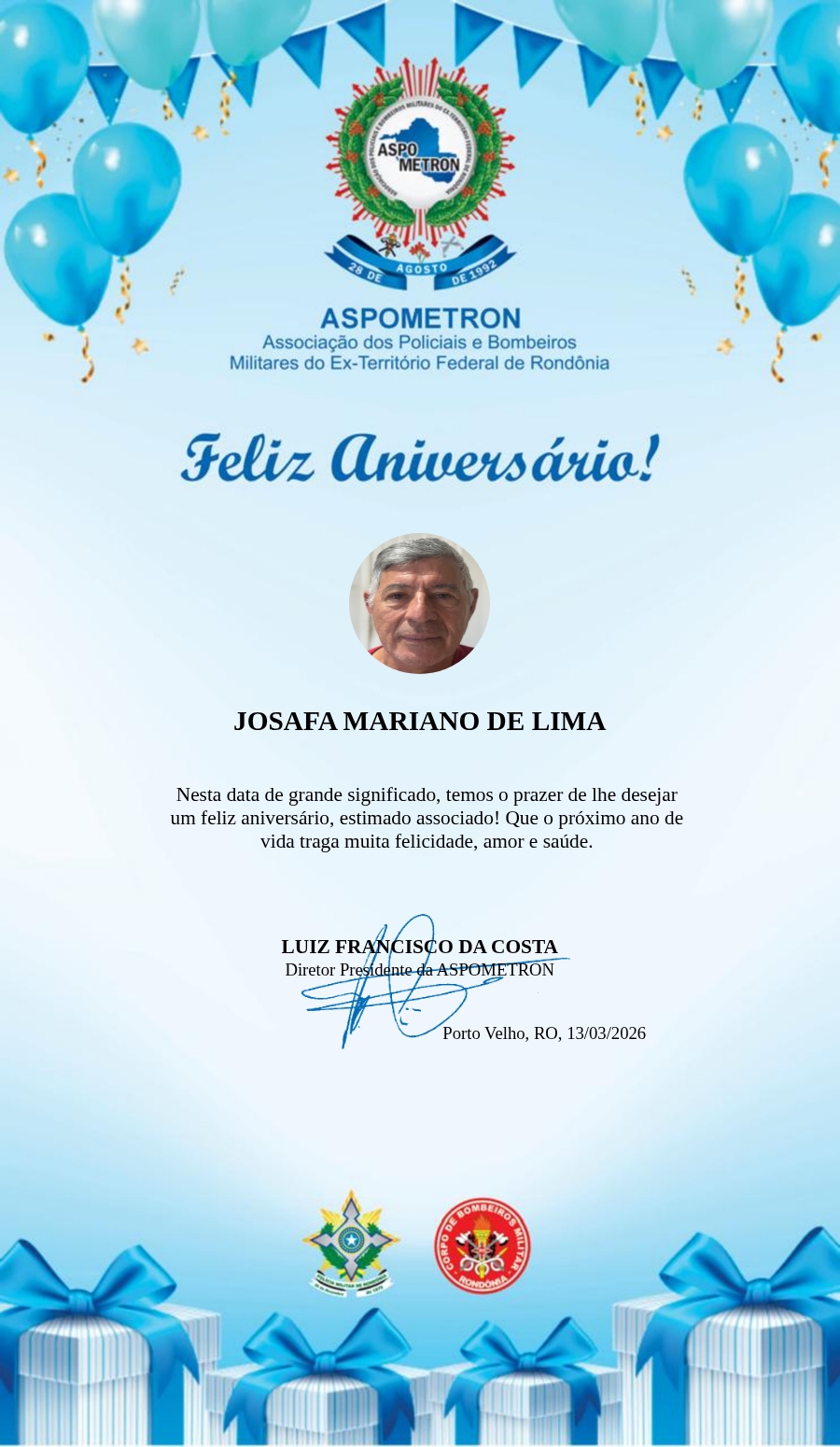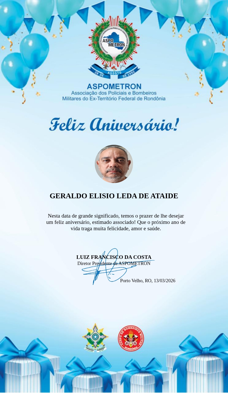 A ASPOMETRON lhe saúda pela passagem de mais um aniversário e deseja muito sucesso, saúde e alegrias! PARABÉNS Guerreiros(as)!