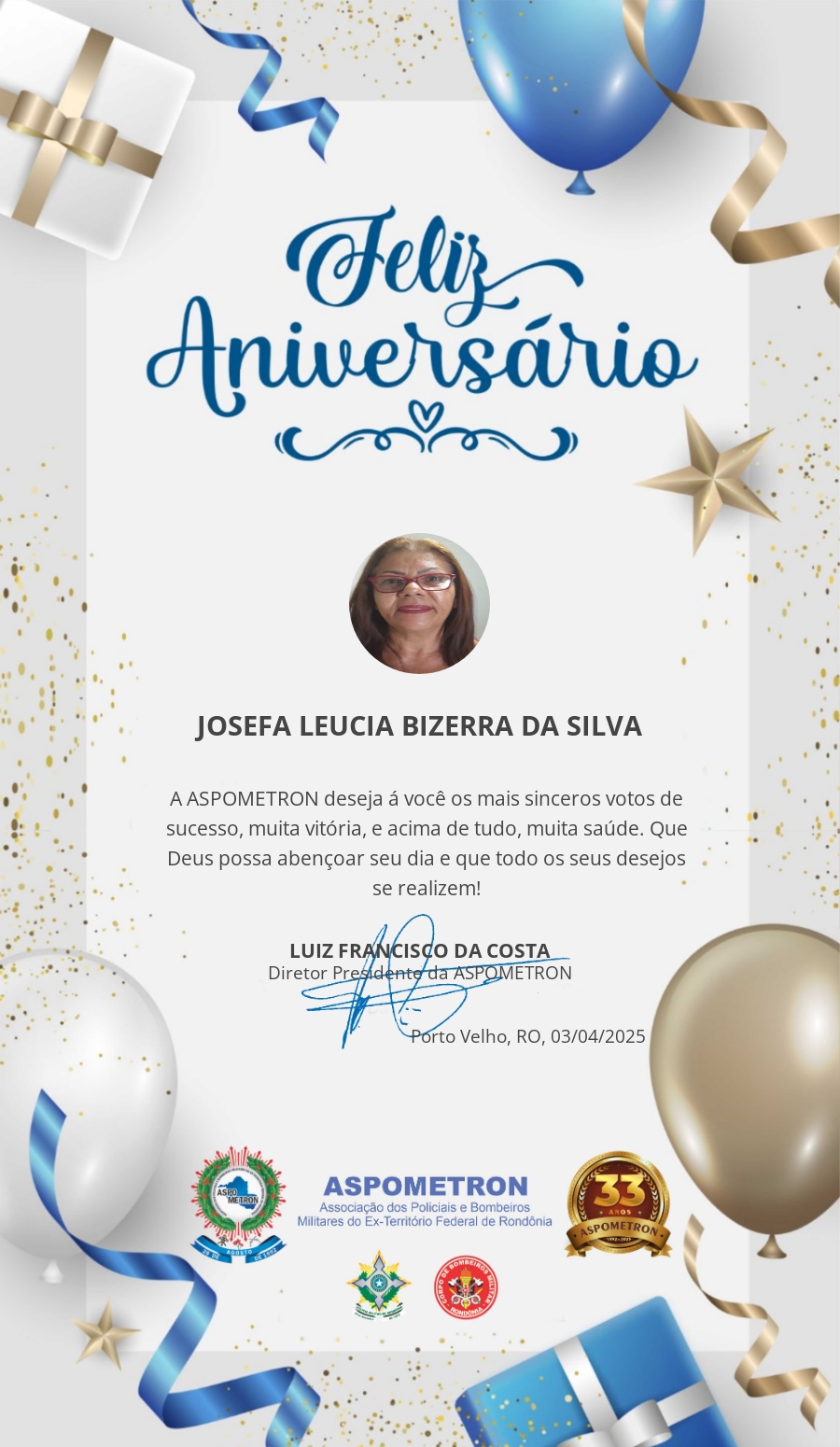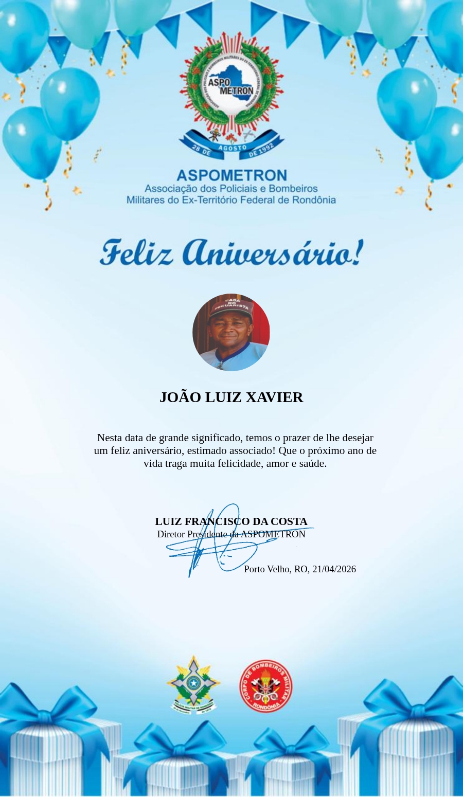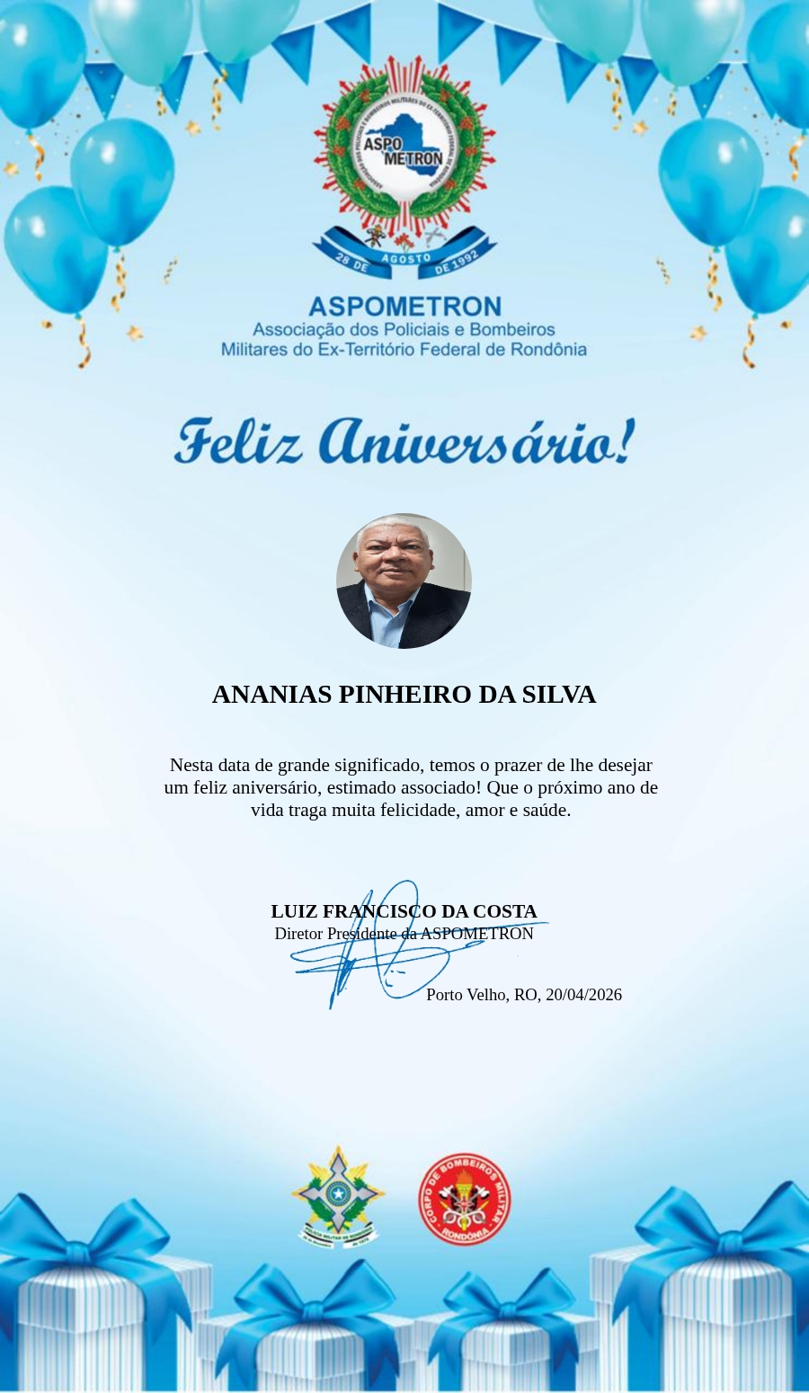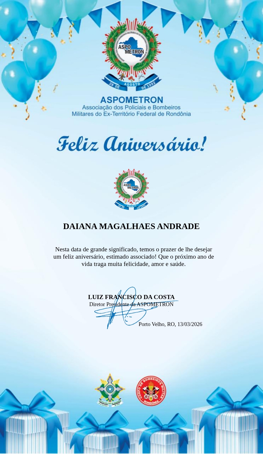 A ASPOMETRON lhe saúda pela passagem de mais um aniversário e deseja muito sucesso, saúde e alegrias! PARABÉNS Guerreiros(as)!