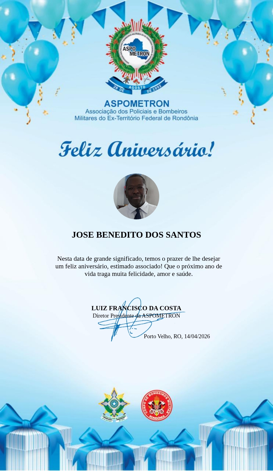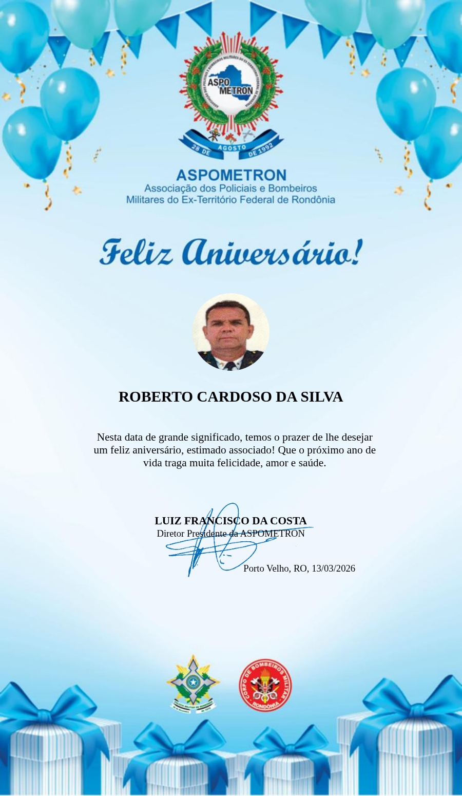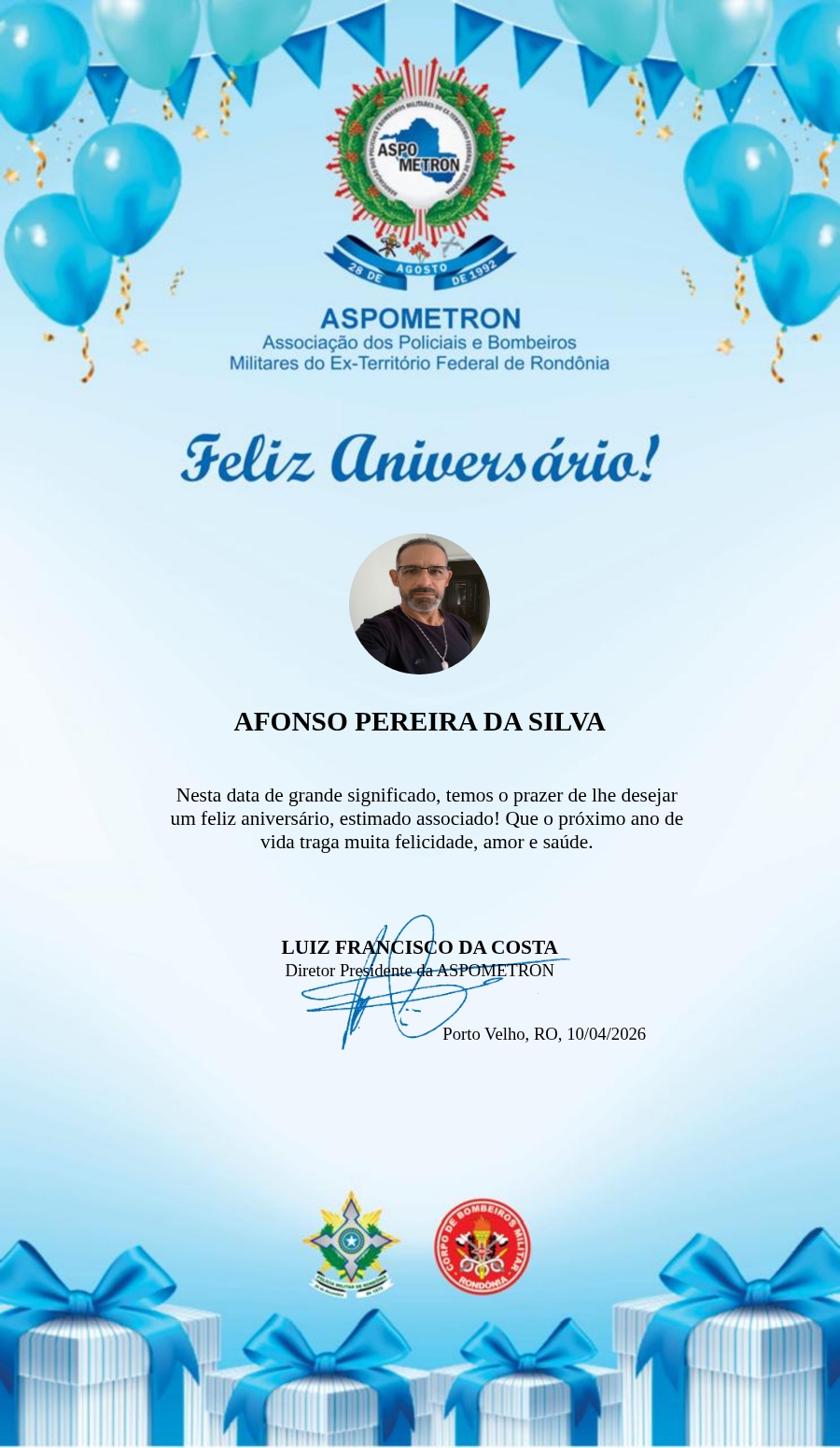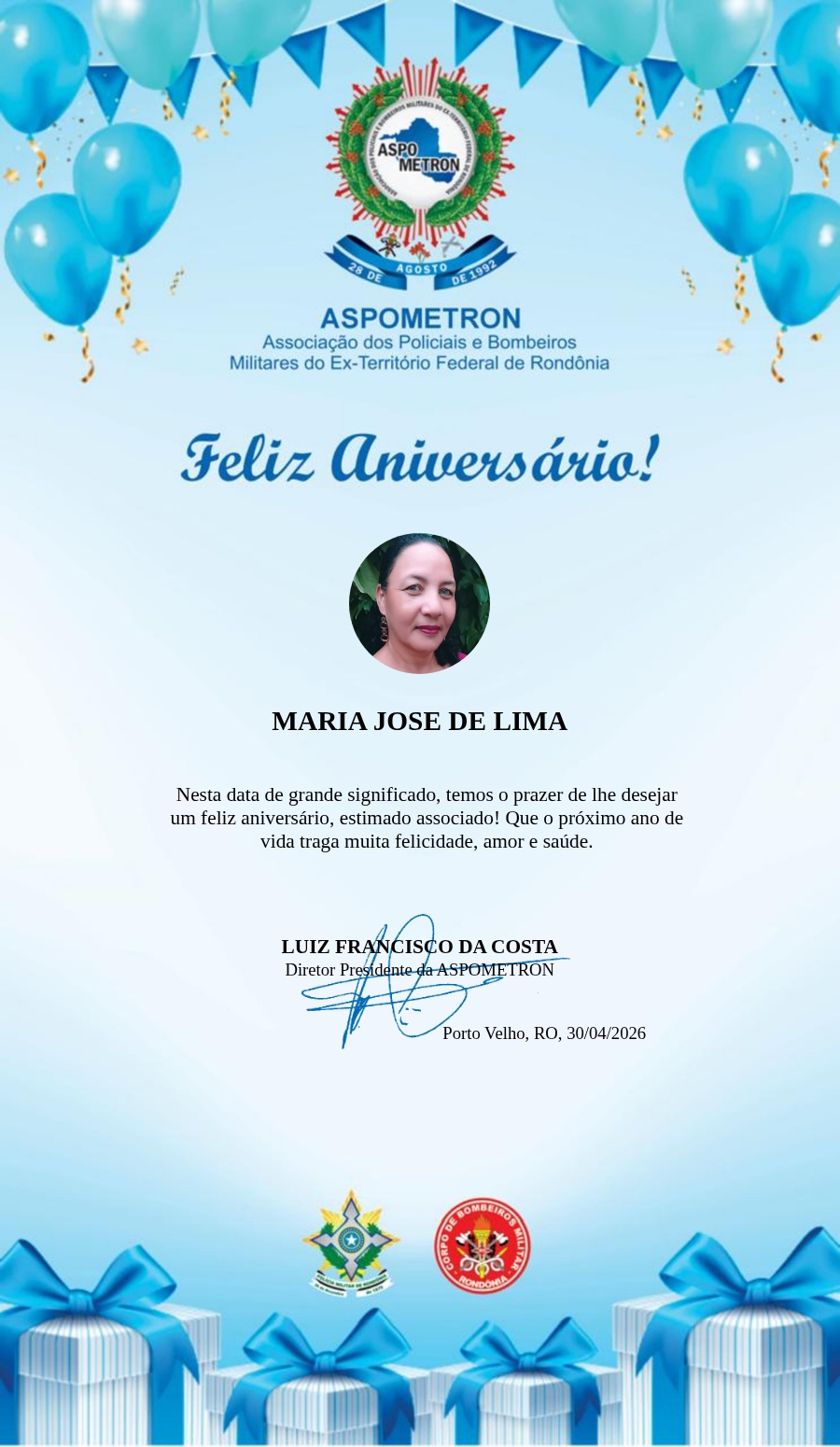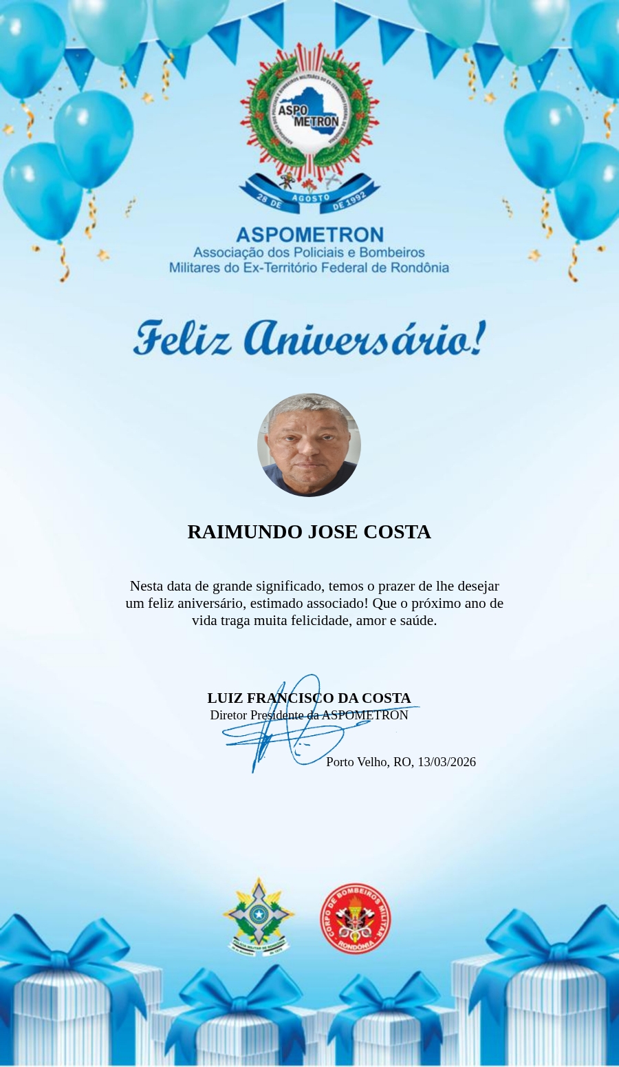 A ASPOMETRON lhe saúda pela passagem de mais um aniversário e deseja muito sucesso, saúde e alegrias! PARABÉNS Guerreiros(as)!