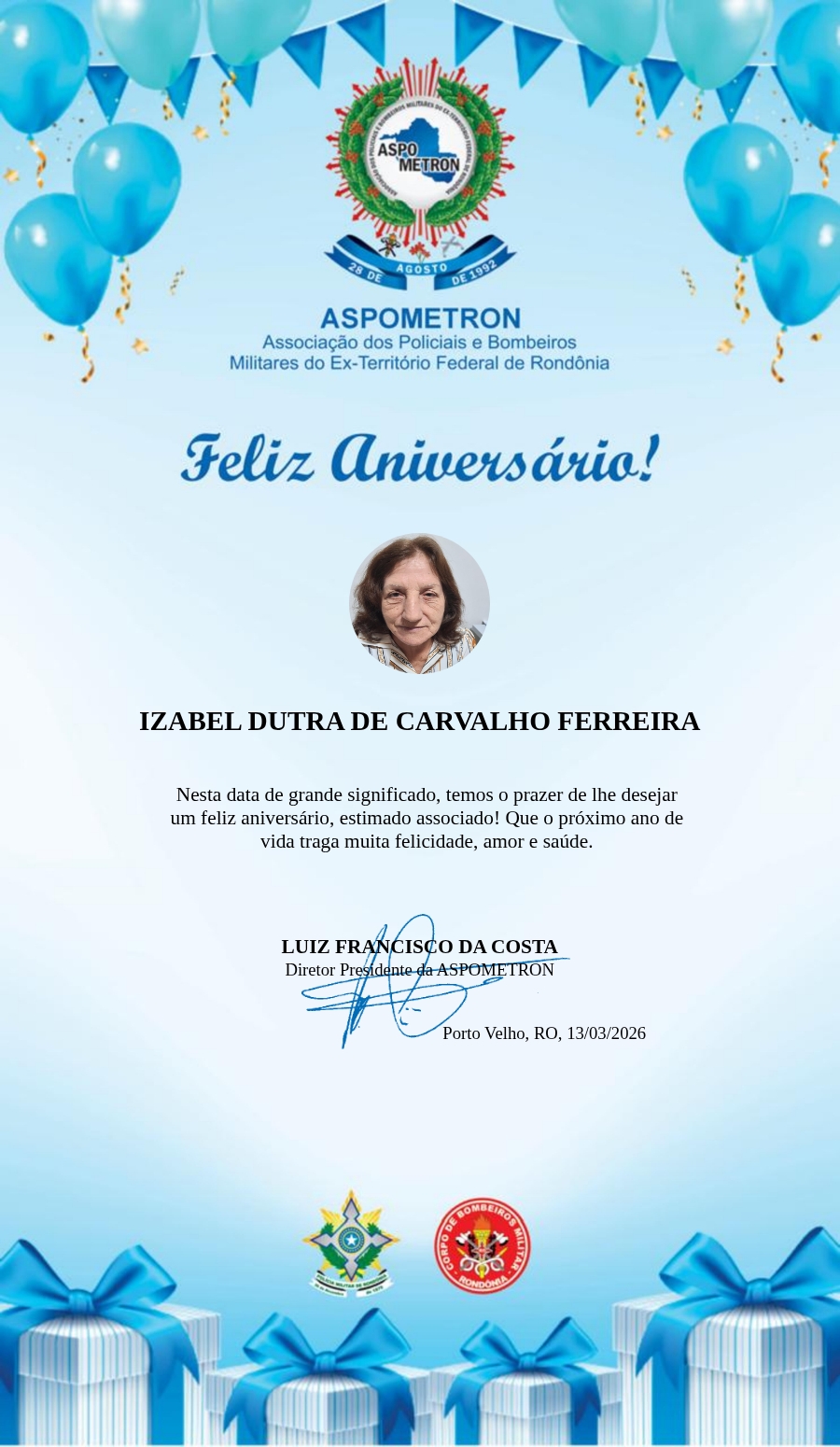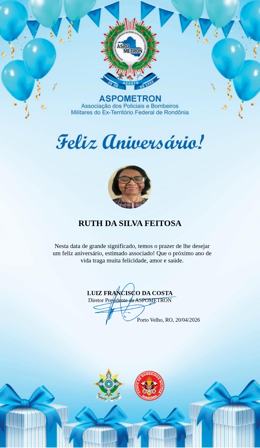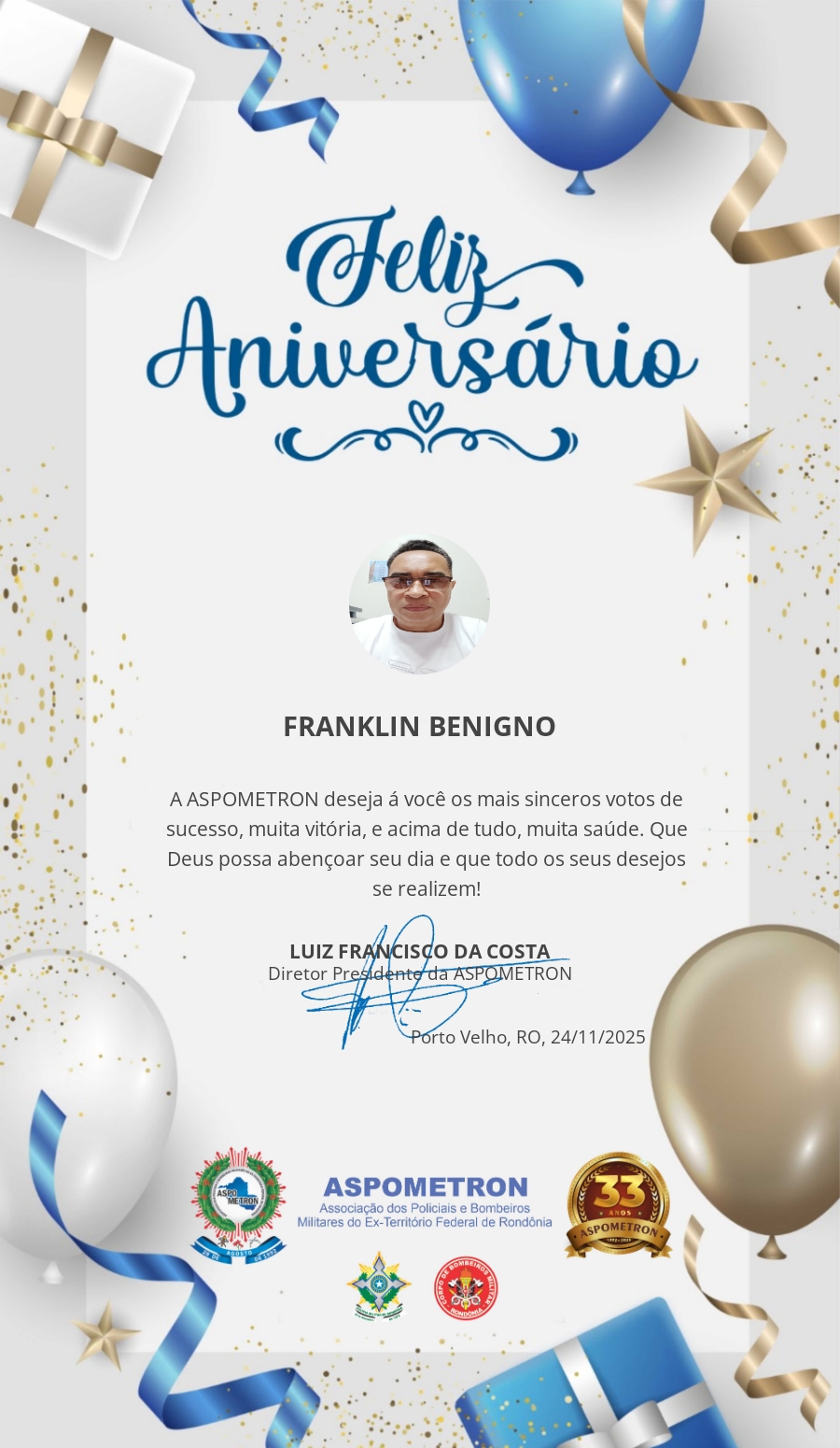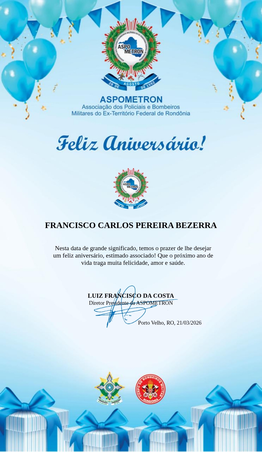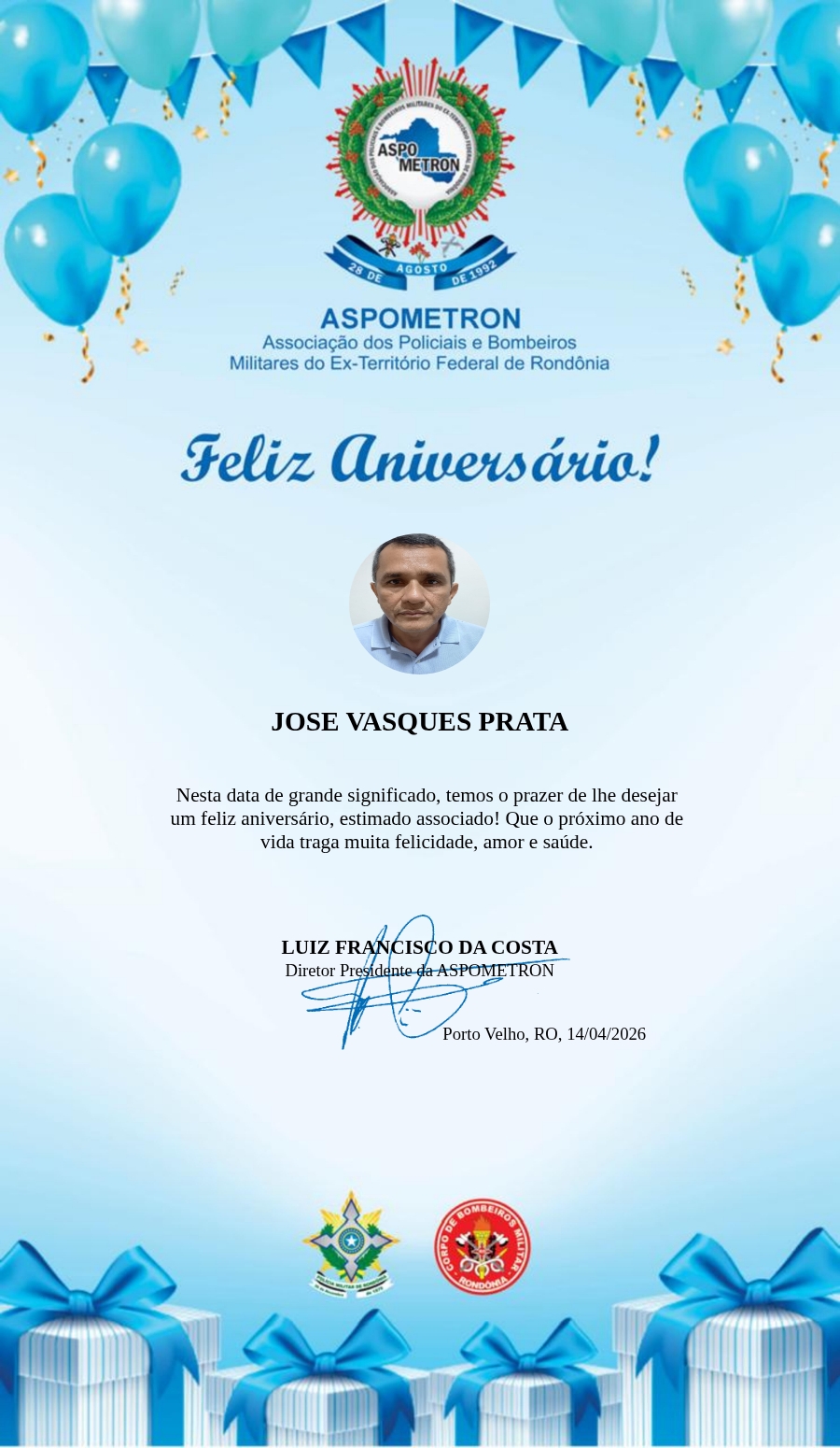 A ASPOMETRON lhe saúda pela passagem de mais um aniversário e deseja muito sucesso, saúde e alegrias! PARABÉNS Guerreiros(as)!