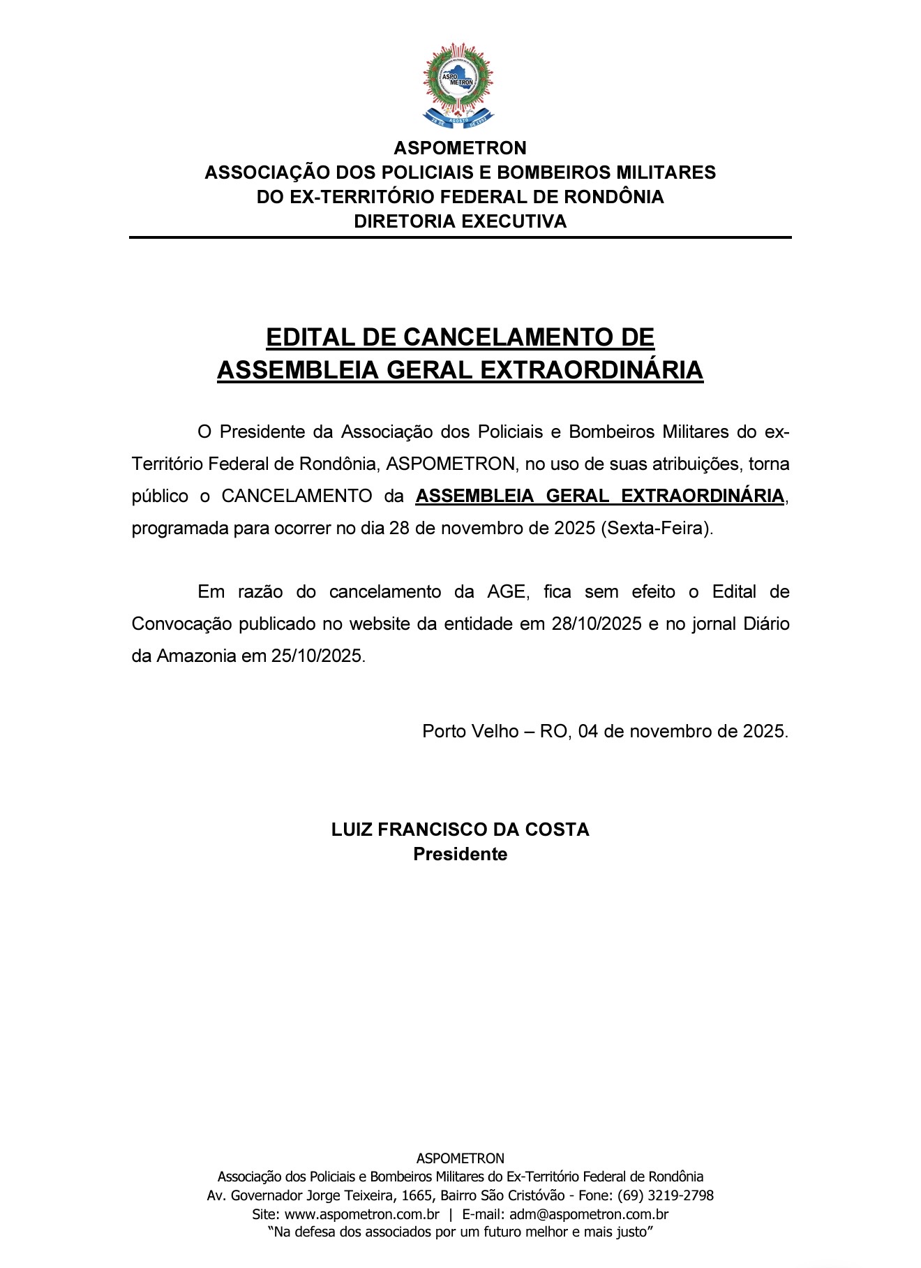 EDITAL DE CANCELAMENTO DE ASSEMBLEIA GERAL EXTRAORDINÁRIA