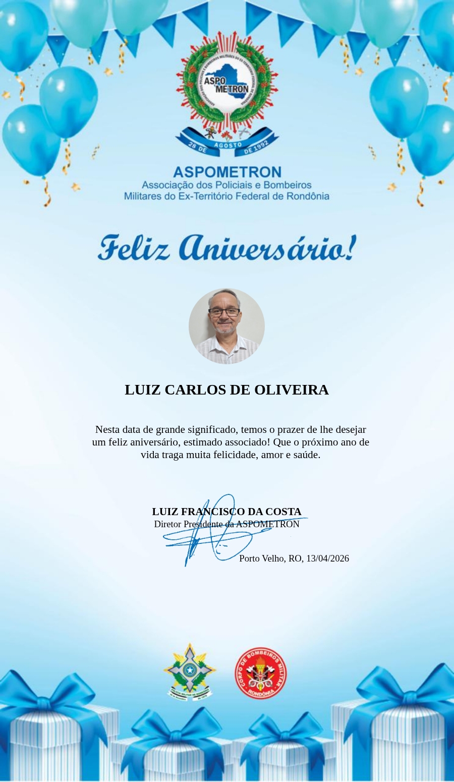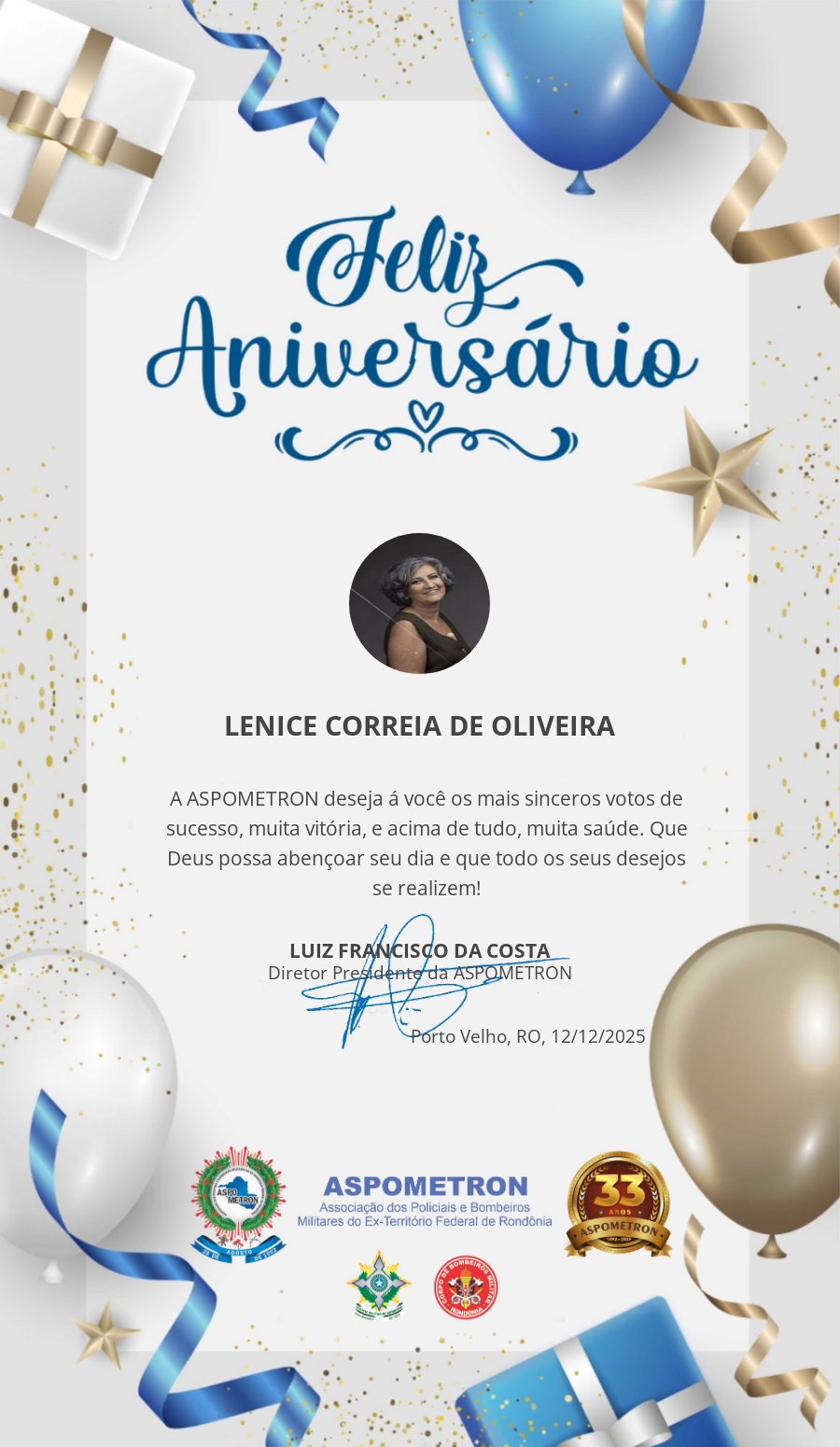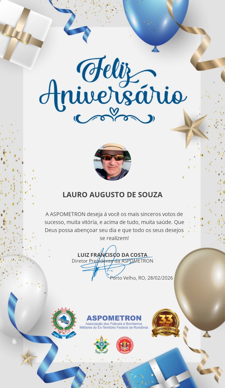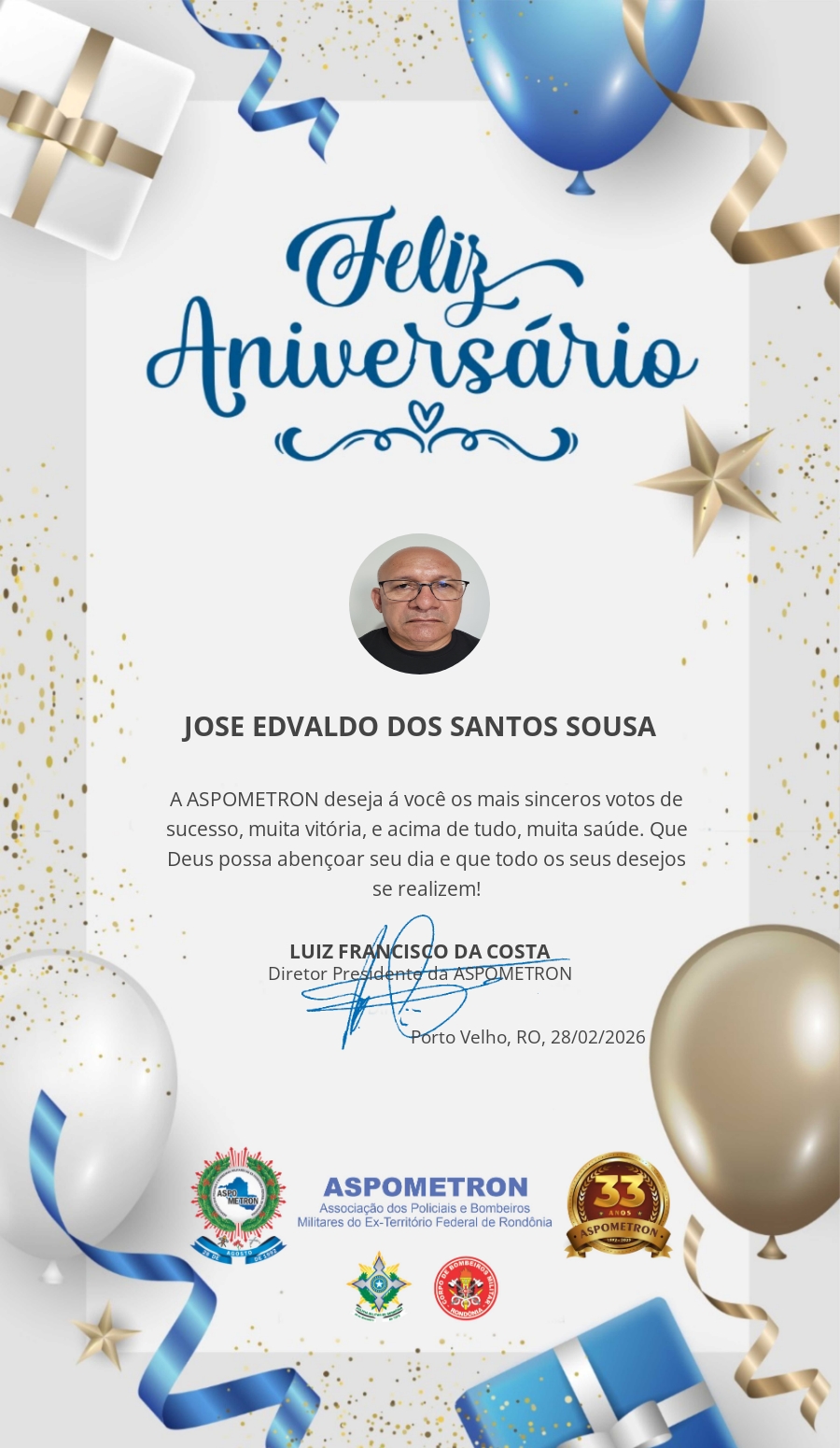 A ASPOMETRON lhe saúda pela passagem de mais um aniversário e deseja muito sucesso, saúde e alegrias! PARABÉNS Guerreiros(as)!